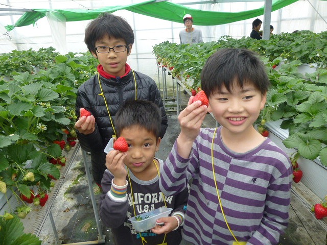 春の味覚収穫体験イチゴ狩り、うどん作り、クッキング、キャンプファイア、道の駅藤樹の里でおみやげタイム